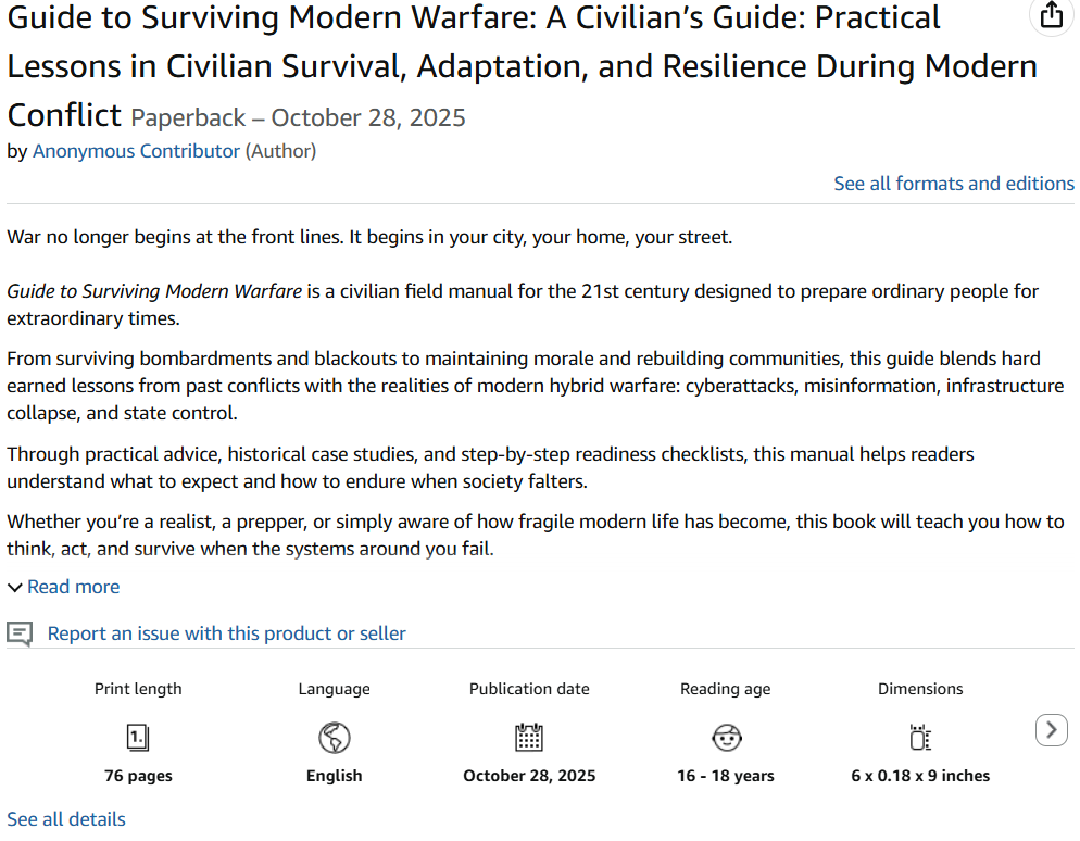 War is no longer distant—it’s digital, urban, and unpredictable. This field manual helps civilians prepare, adapt, and endure when the world falls apart.